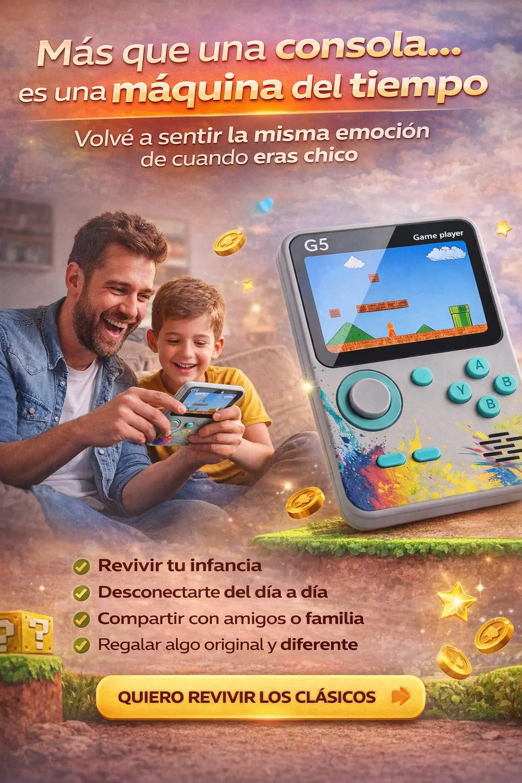 Su diseño inspirado en los clásicos, sumado a una interfaz sencilla, la convierte en el regalo ideal gracias a su gran variedad de juegos icónicos