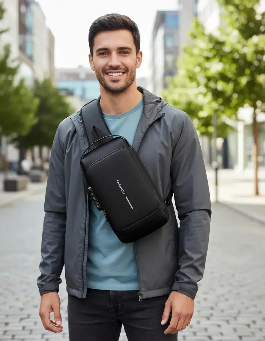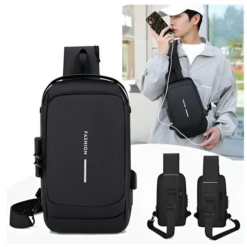 Bloqueo antirrobo: con función antirrobo, es práctico y conveniente. Protección de privacidad con bloqueo de contraseña, utiliza una contraseña de tres dígitos para bloquear el control deslizante y evitar que la bolsa del pecho se abra para robar artículos.